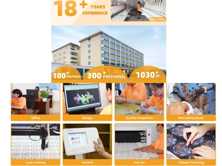 We are an embroidered patch factory in China, which have been found in 18 years, so, weaccumulated enough experience. Our tenet is provided high quality, low cost products and perfectservice to clients. The company specializes in computer embroidery processing business at homeand abroad.